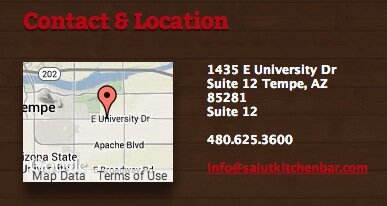 When looking for great restaurants in Tempe, Salut Kitchen Bar should be at the top of your list. Our menu has something for everyone, from Bruschetta’s to Burgers to quite possibly the best Salmon dish you have ever tasted. While we take great pride in our freshness and quality of food, we are extremely focused on giving you the best dining experience possible. Our staff is always here to go above and beyond, if there is anything you need, please just ask. We look forward to having you as one of our guests soon.